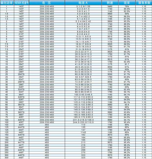 NEMA超高效電動(dòng)機(jī)型號(hào):